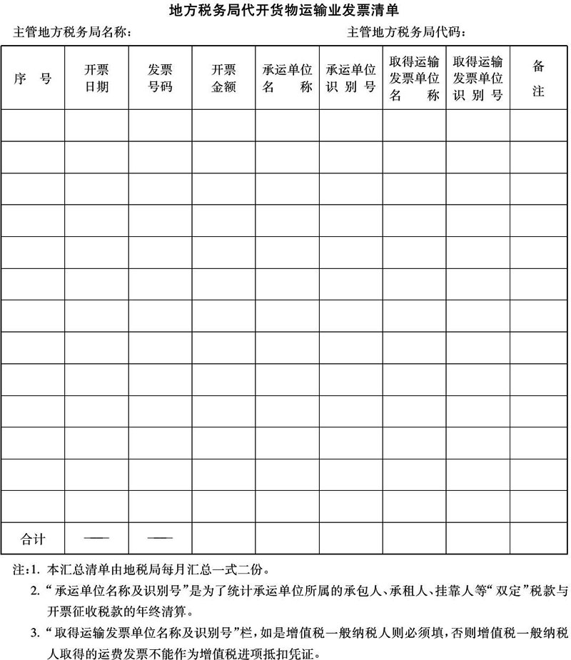 附件:1.地方税务局代开货物运输业发票清单