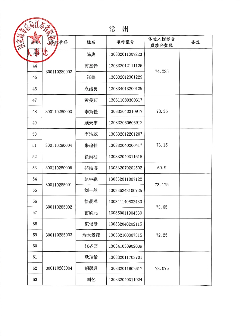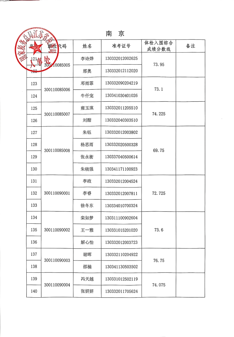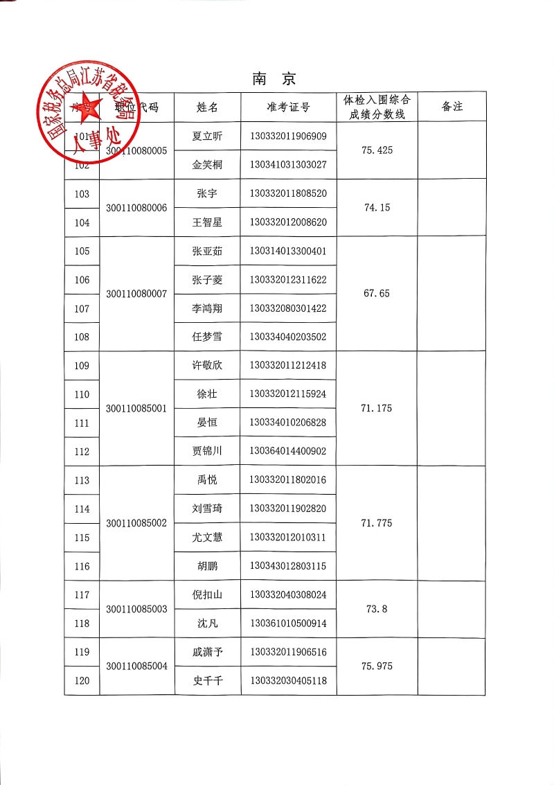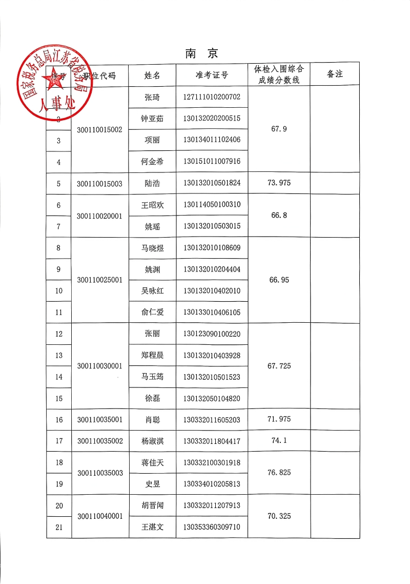 国家税务总局江苏省税务局2026年度考试录用公务员3月16日体检入围人员名单