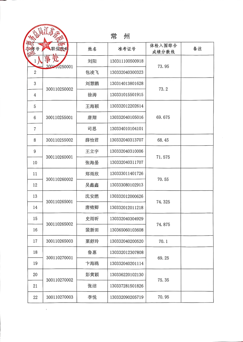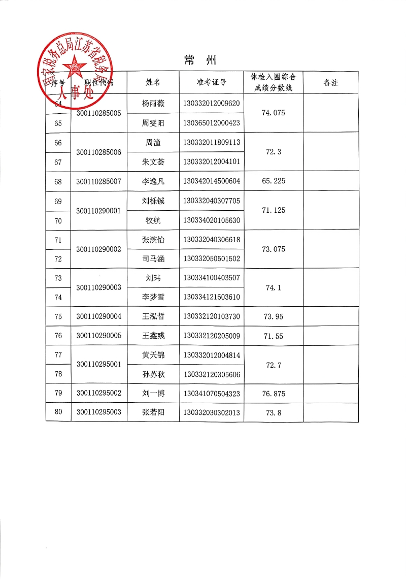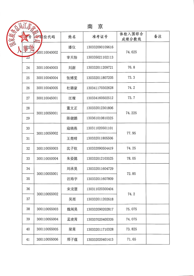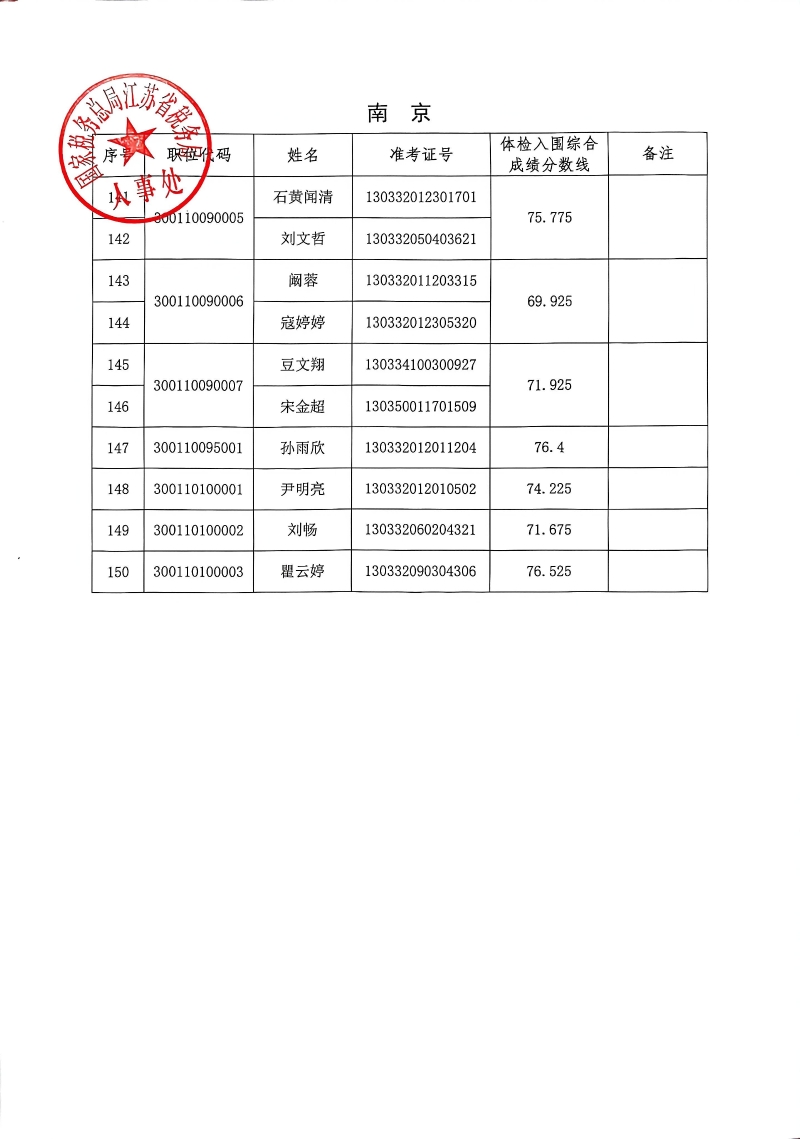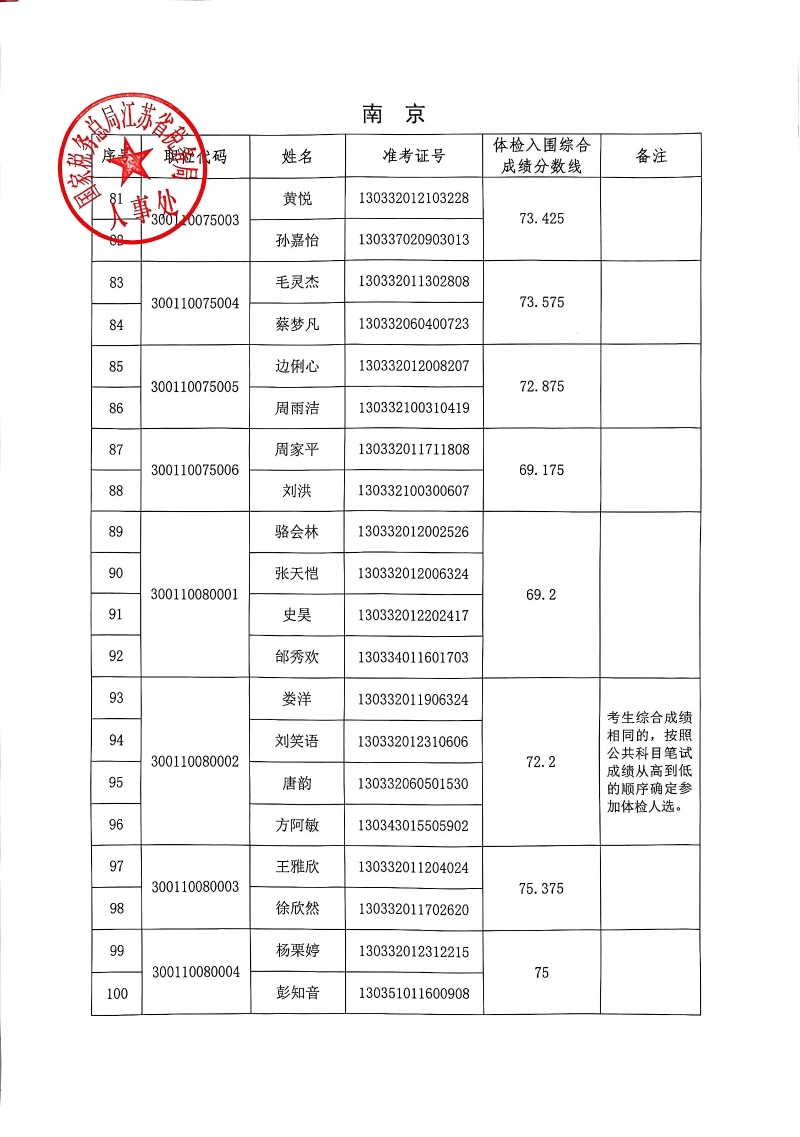 国家税务总局江苏省税务局2026年度考试录用公务员3月16日体检入围人员名单