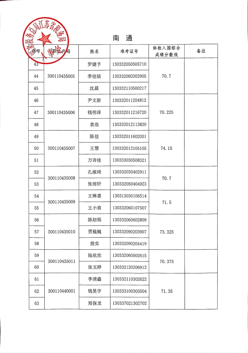 国家税务总局江苏省税务局网站 公务员招录 国家税务总局江苏省税务局2026年度考试录用公务员3月18日体检入围人员名单-手机凯发k8