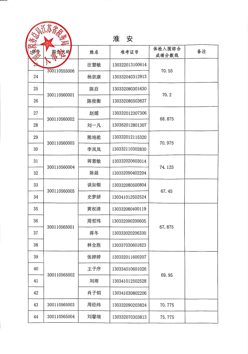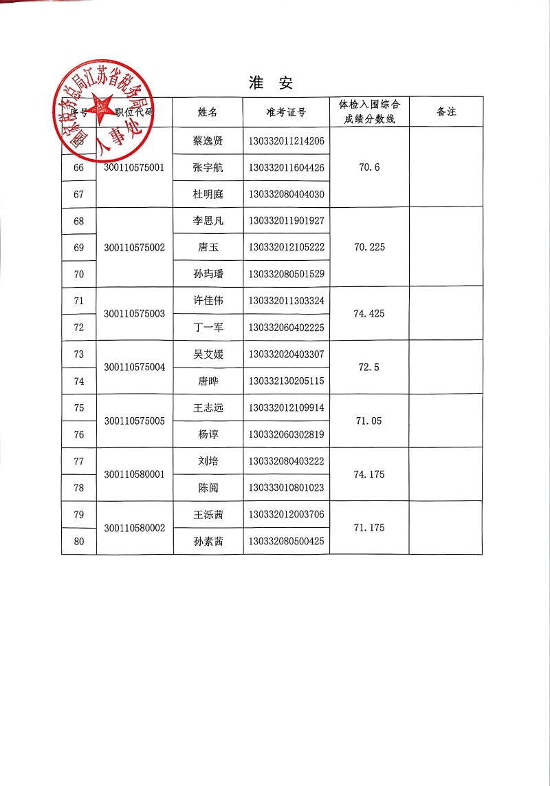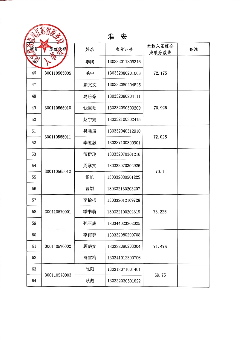 国家税务总局江苏省税务局2026年度考试录用公务员3月19日体检入围人员名单