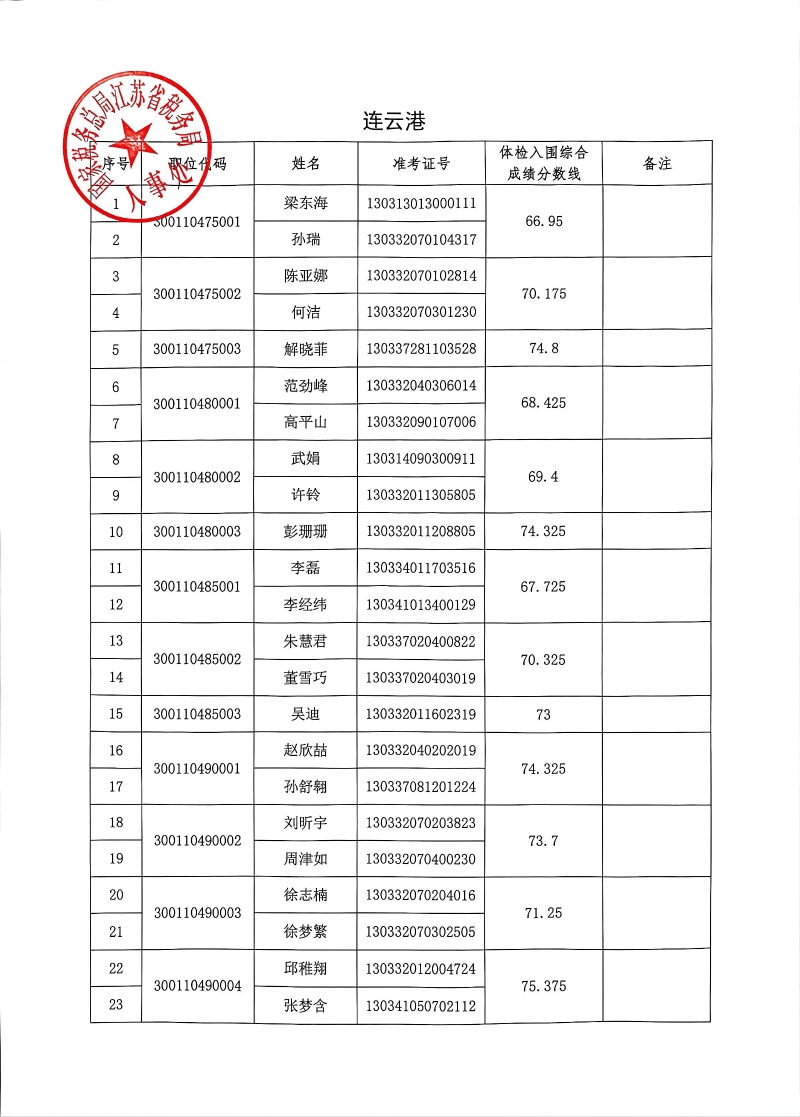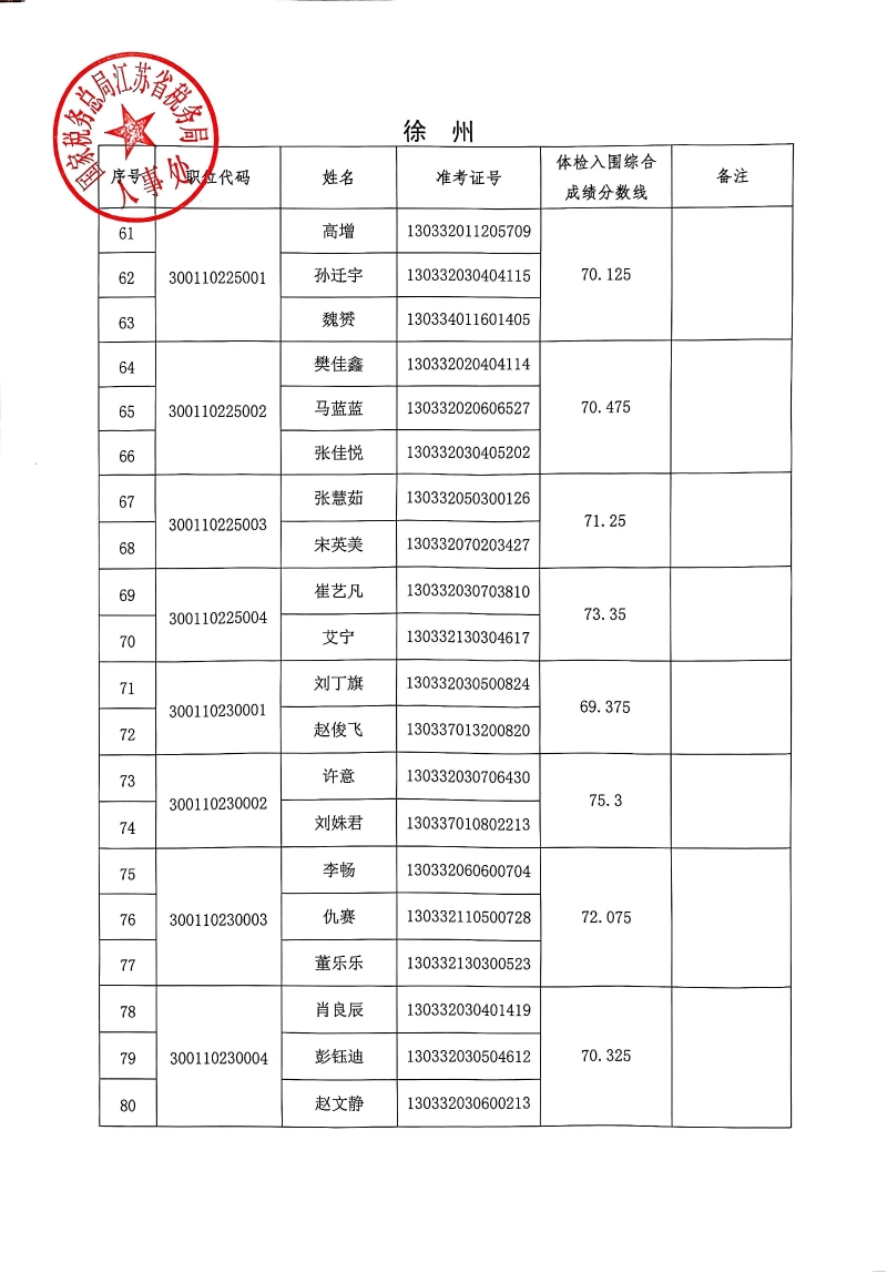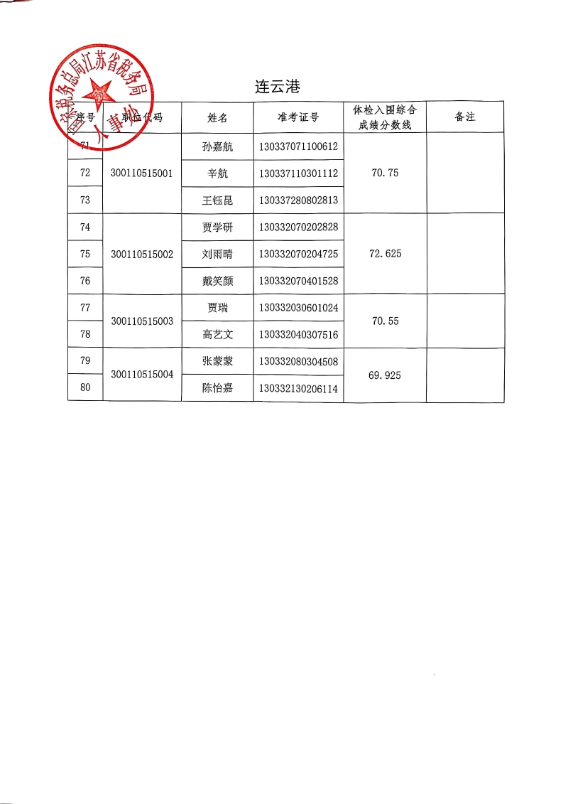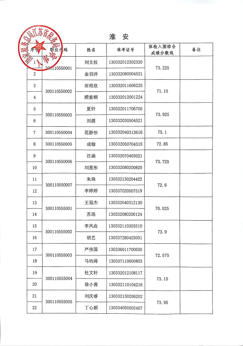 国家税务总局江苏省税务局2026年度考试录用公务员3月19日体检入围人员名单