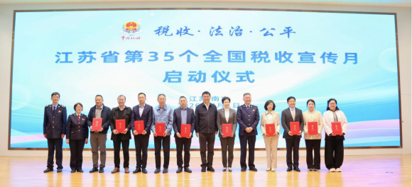 4月1日上午,在江苏省第35个全国税收宣传月启动仪式活动现场,江苏税务部门向基层全国人大代表、政协委员,省总商会、省女企业家协会负责人和企业家代表颁发“合规经营宣传员、税务执法监督员”聘书,凝聚税企同行合力,大力弘扬合规经营、依法纳税的良好风尚,共同守护公平公正、清朗有序的法治底线。