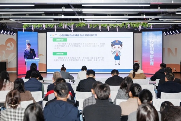 为进一步推动惠企政策精准滴灌、直达快享,税务干部夏至锴以“小微企业税收优惠政策”为主题,开展专题宣讲。以“面对面”讲政策、“零距离”解难题的方式,助力企业知、懂、用、享税收政策红利,点燃高质量发展“强引擎”。