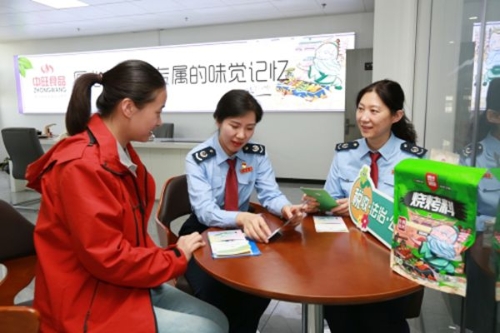 第34个全国税收宣传月期间,徐州市贾汪区税务局组织青年税务干部走进徐州中旺食品科技有限公司,了解涉税诉求,并征求对税务工作的意见建议。图为税务干部给纳税人讲解纳税信用用途、评定、修复相关要点。