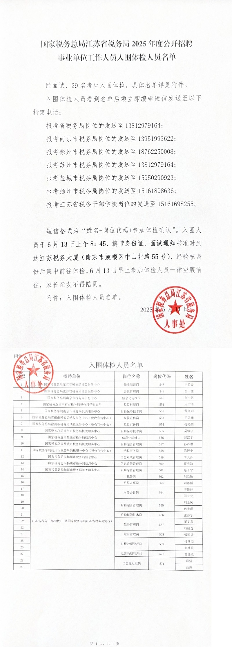 国家税务总局江苏省税务局网站 手机凯发k8的公告 国家税务总局江苏省税务局2025年度公开招聘事业单位工作人员入围体检人员名单-手机凯发k8