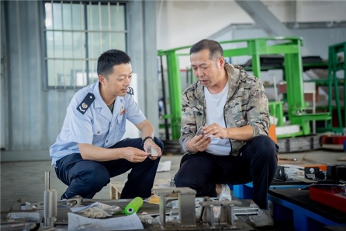 图为国家税务总局南通市崇川区税务局干部走访辖区退役军人创办的企业,宣传退役军人就业创业有关税费支持政策和办税缴费便利化举措。